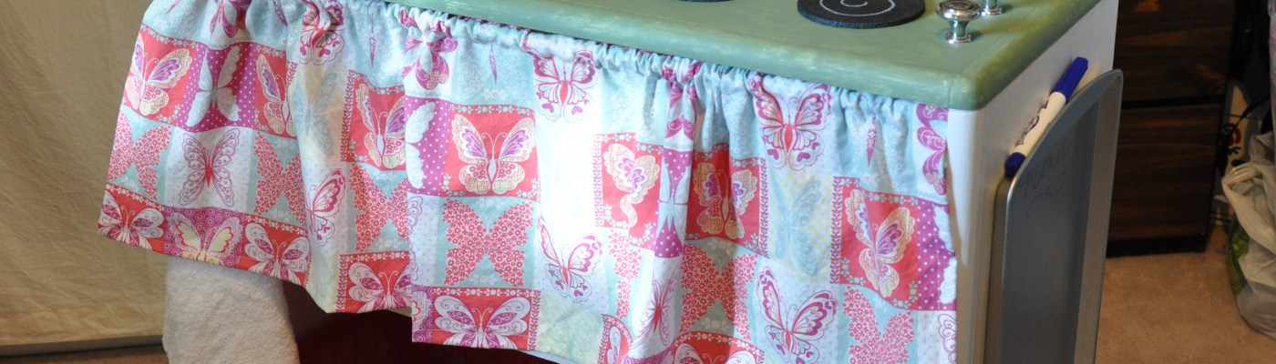 And I was done! Good thing too, because it was just in time for her birthday. If you are wondering how this little kitchen has fared? Really well. For well over a year it had daily use, when she was cooking dinner for us, and now – a few years later she still plays with it a couple times a week and it gets lots of use when the neighborhood kids come over.