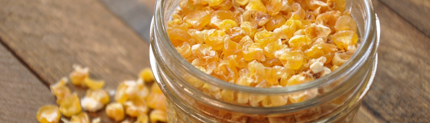 To dry corn you will need to blanche them first for 5 minutes on the cob, plunge into ice water bath. Cut the kernels off the cob and spread on drying tray. You will want to use a mesh drying tray because once dry the corn is quite small. They will take 8-12 hours to dry.
