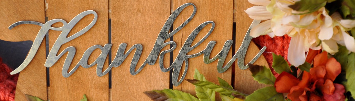 Fall Wreath with the addition of a dollar store wood leaf turned into a Thankful Wreath