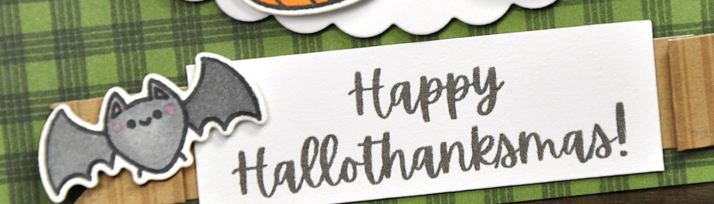 Thats what I was doing when I pulled out a few pieces, put them to the side and rummaged some more. Once done, I was cleaning up and noticed that I had some holiday characters together. And out of the blue – Happy Hallothanksmas popped into my head. Thats when I just knew I HAD to make a card!