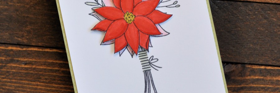 Merry Poinsettia card: a little fussy cutting, markers and a blender pen help make this card shine.